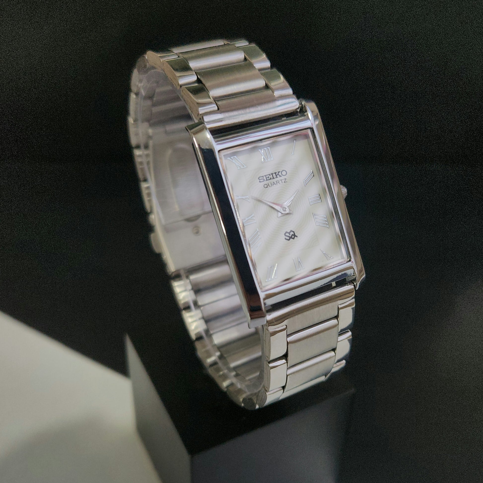 MOD Seiko Slim Rectangular Quartz White Face Bracelet Men's Wrist Watch J95