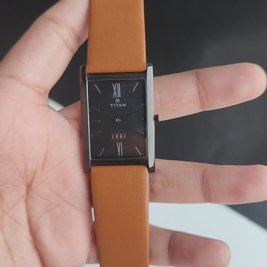Original TITAN EDGE 1043YBA Rectangle Black Face 25MM Case Men's Watch J69