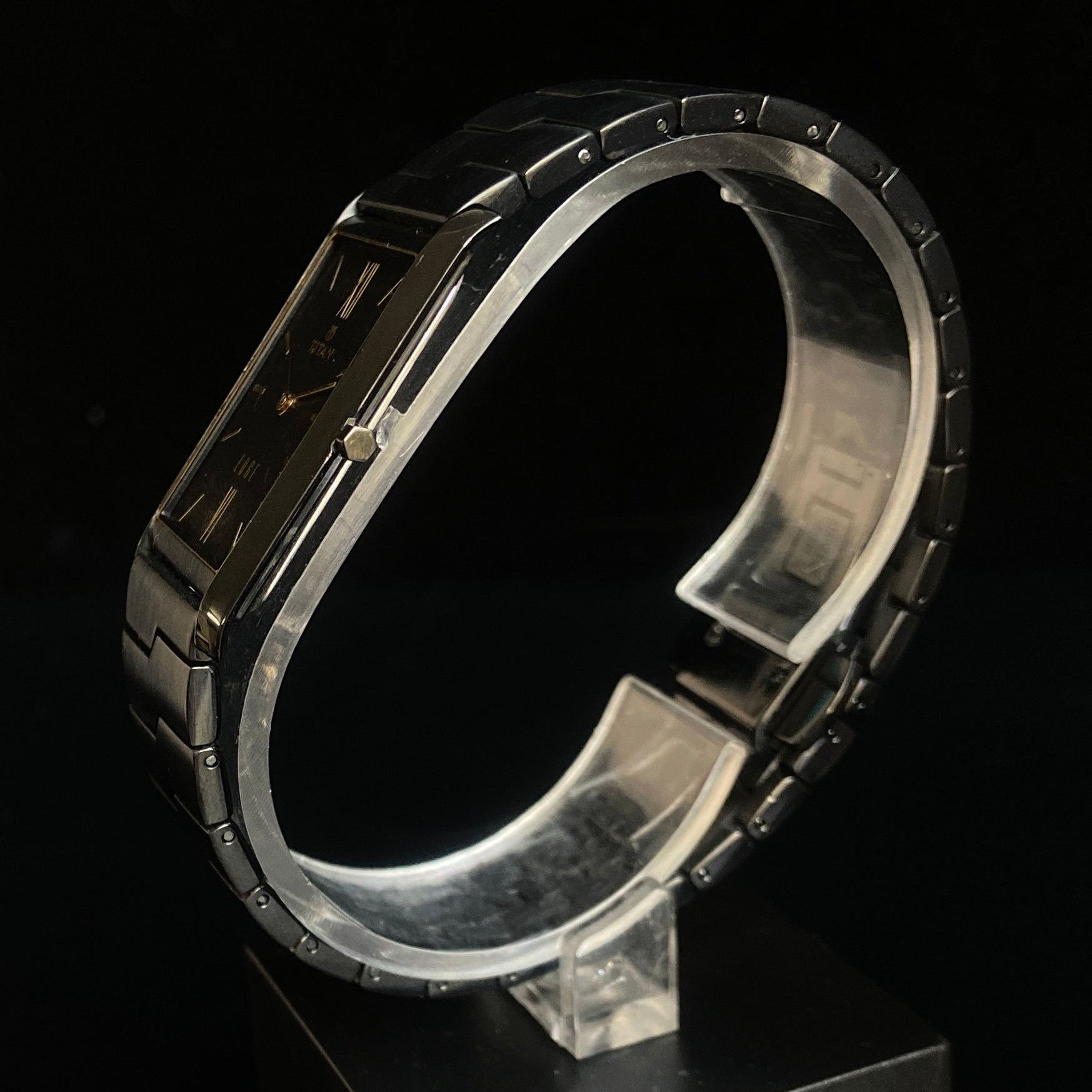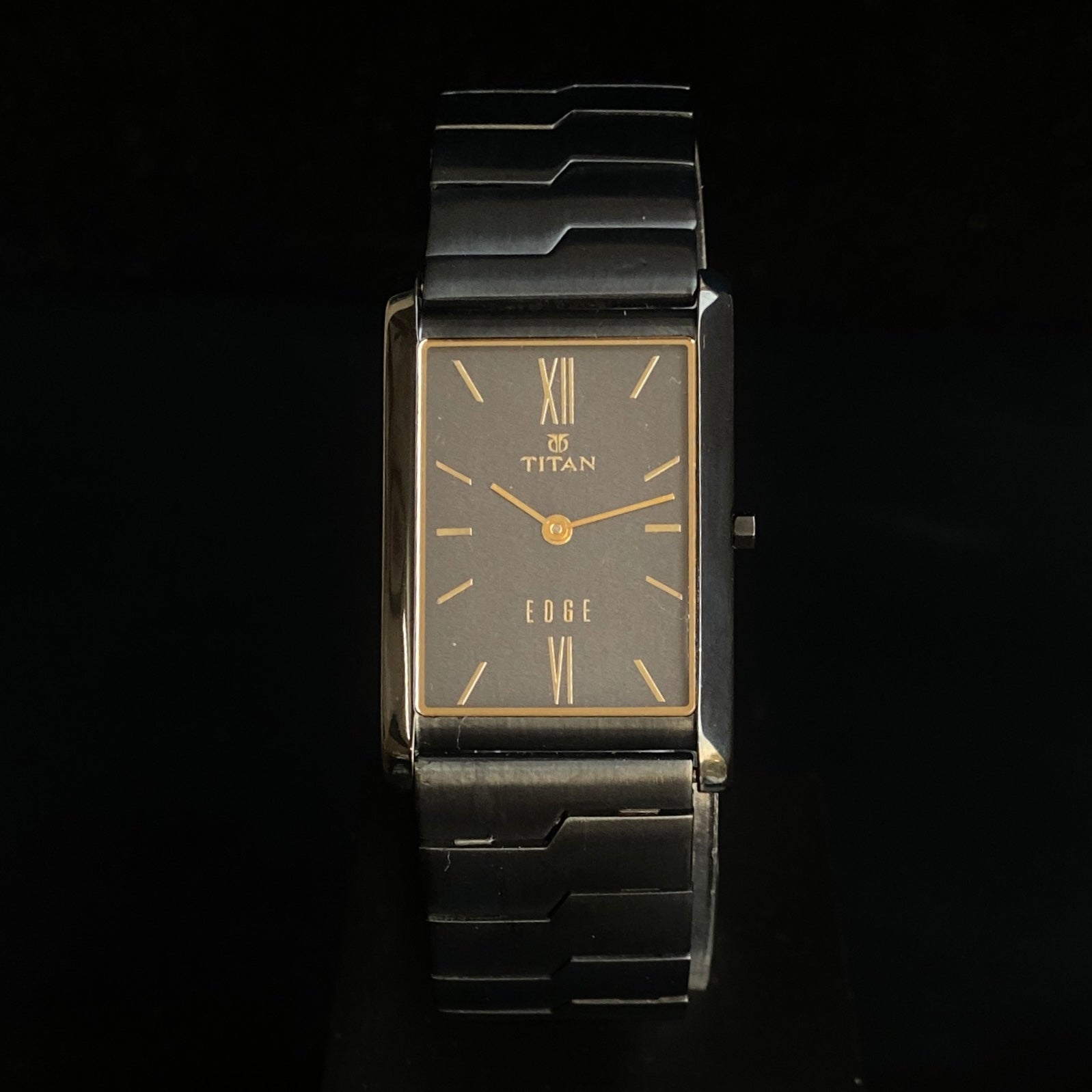 Original TITAN EDGE 1043YCA Rectangular Black Face 25MM Case Men's Watch K36