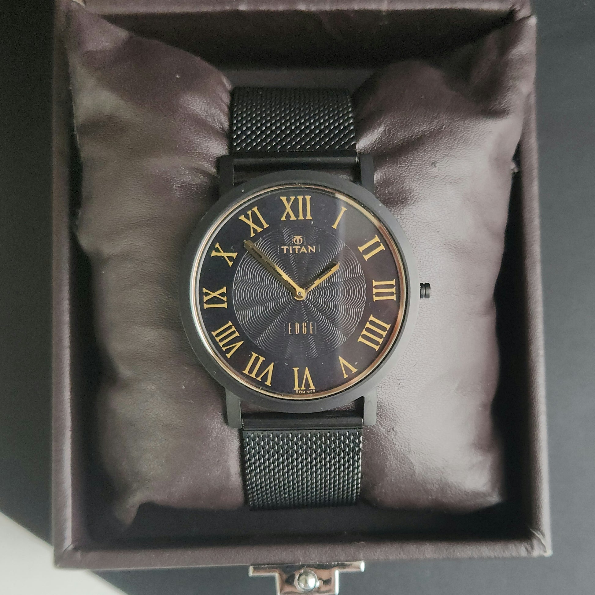 Original TITAN EDGE 1595WAB32 Round Black Face 39MM Case Men's Watch J90
