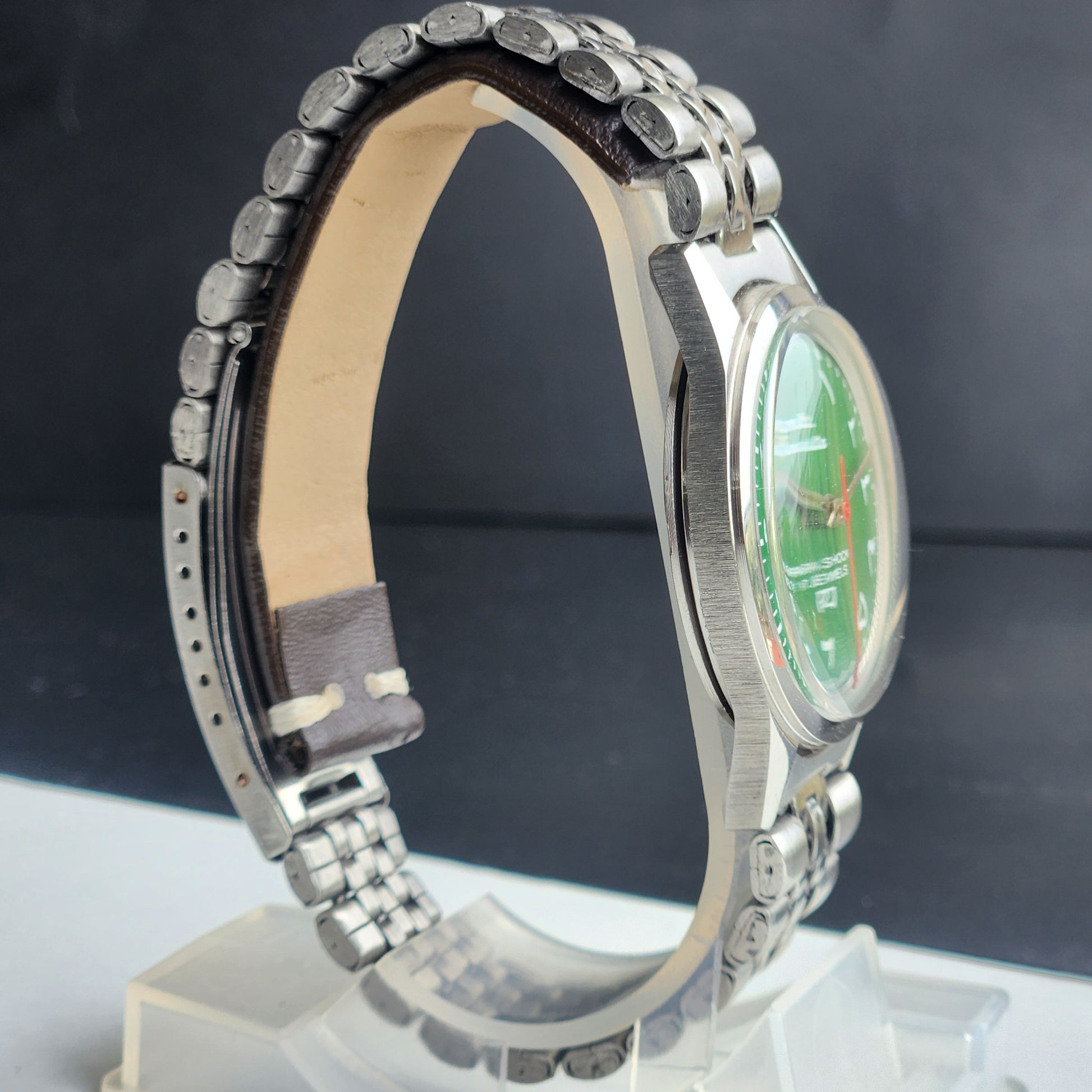 Vintage Mod Seiko 5 Automatic 17 Jewels Cal. 6309 Green Face Black Leather Band Day-Date Men's Wrist Watch D21