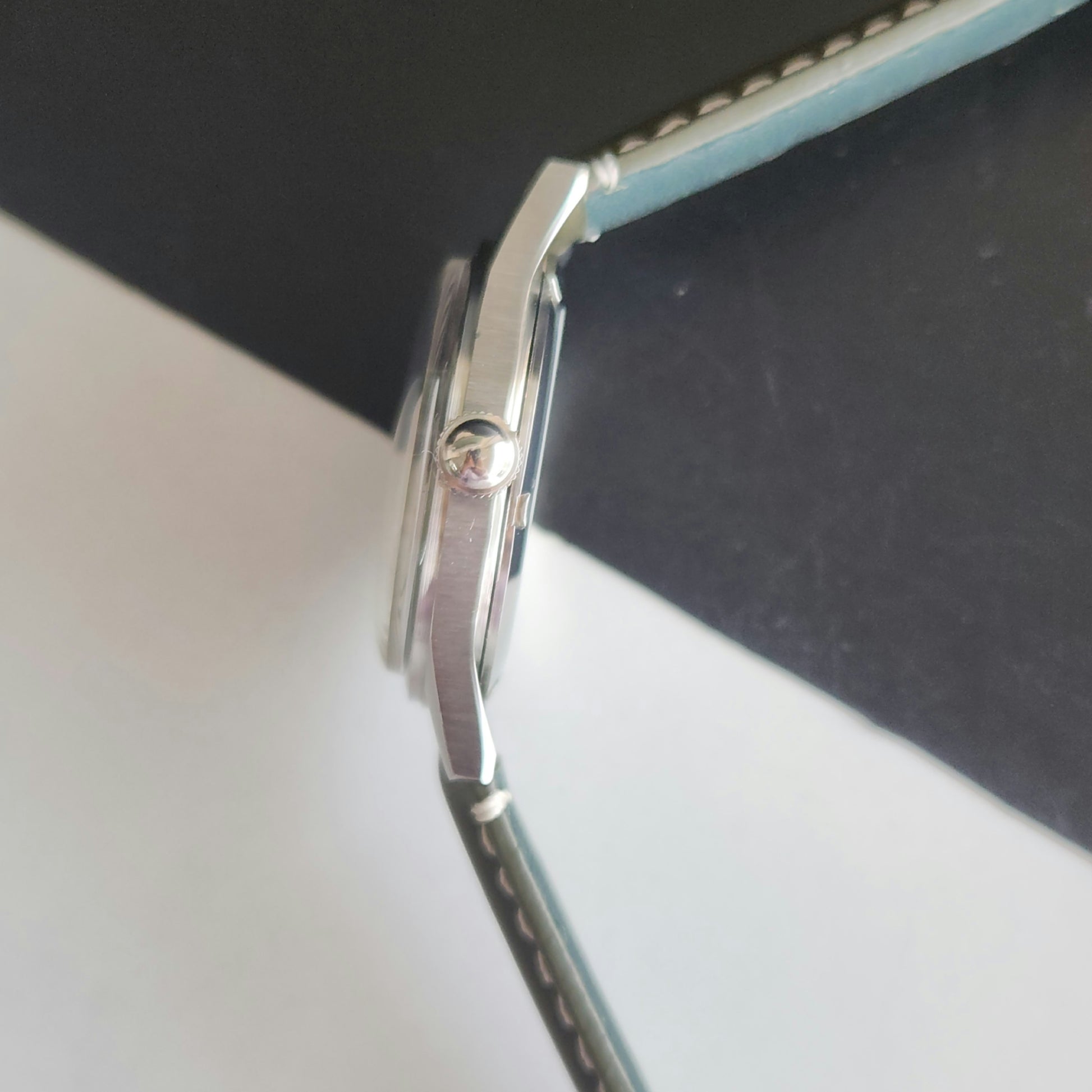 Vintage MOD HMT Janata Bangla Hand Winding 17 Jewels Tiffany Blue Face Black Leather Strap Men's Wrist Watch J31