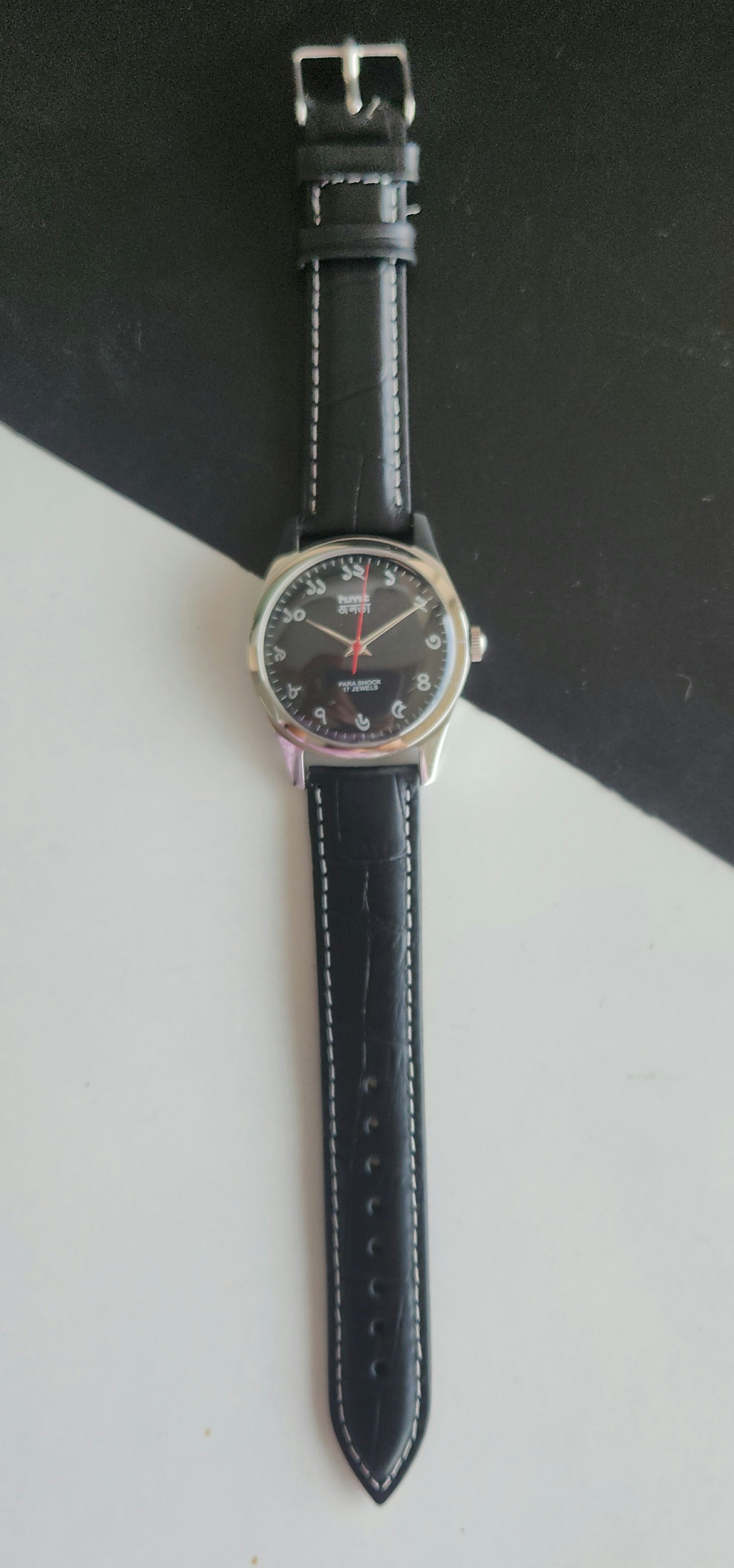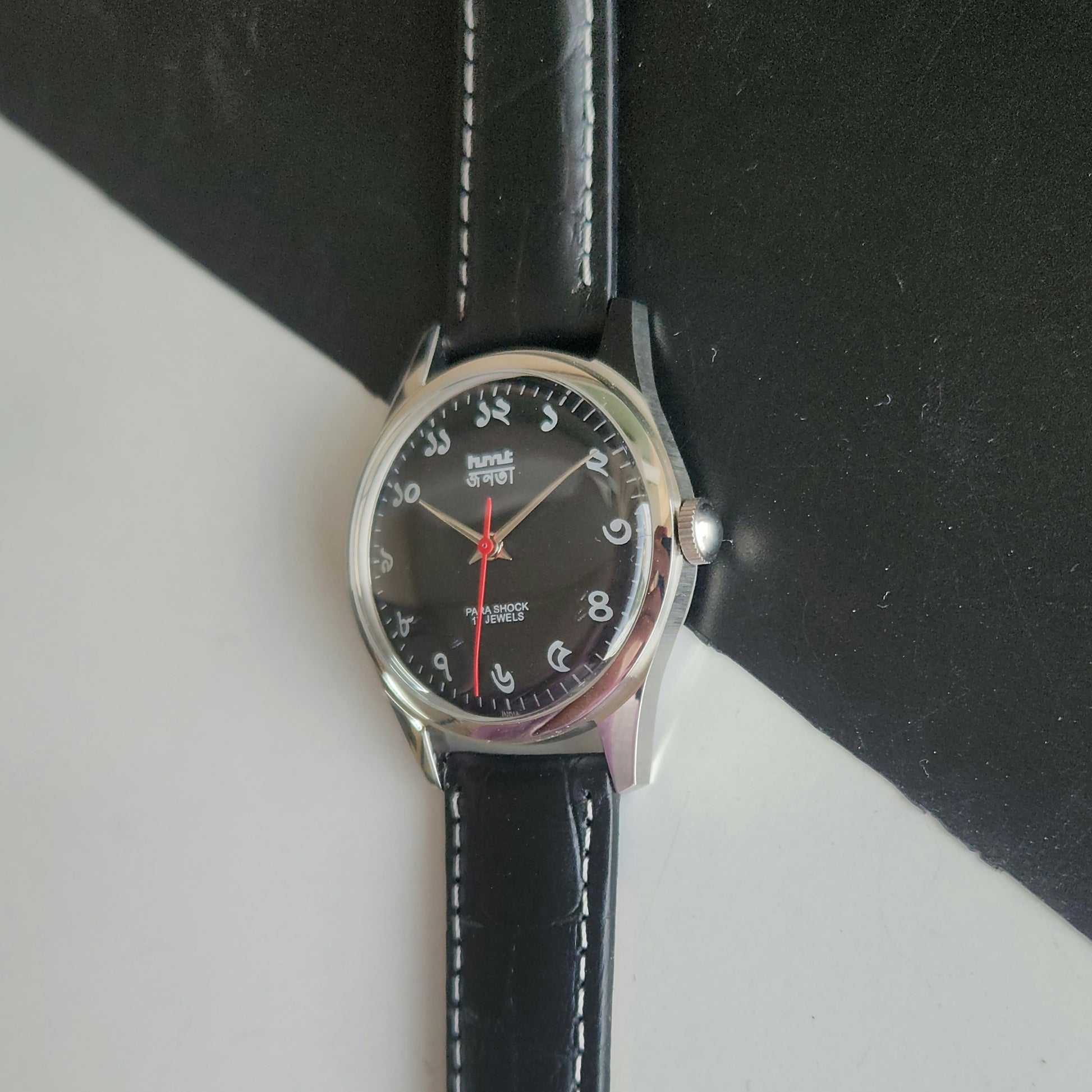 Vintage MOD HMT Janata Bangla Hand Winding 17 Jewels Black Face Black Leather Strap Men's Wrist Watch J33