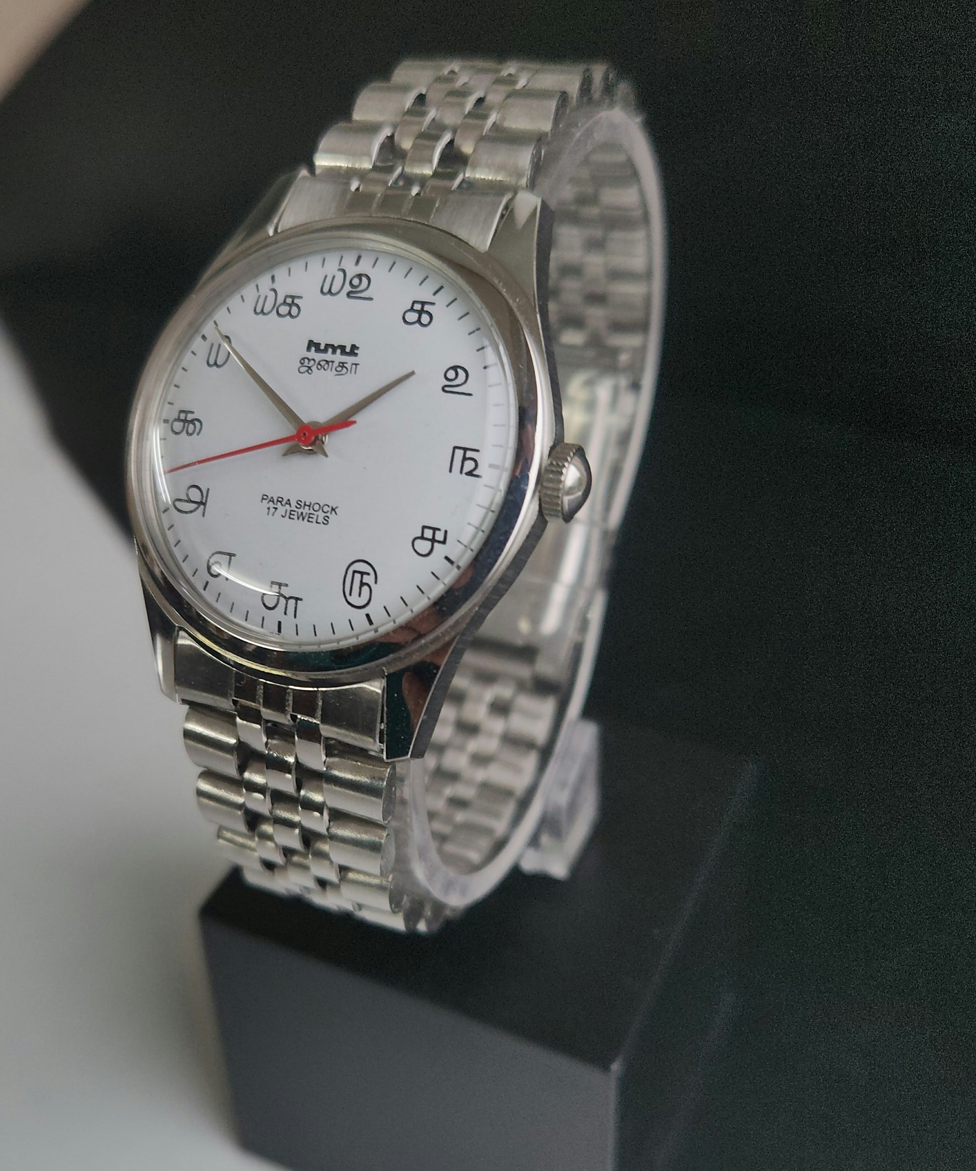 Vintage MOD HMT Janata Tamil Hand Winding 17 Jewels White 35mm Silver Case With Bracelet Men's Wrist Watch J77