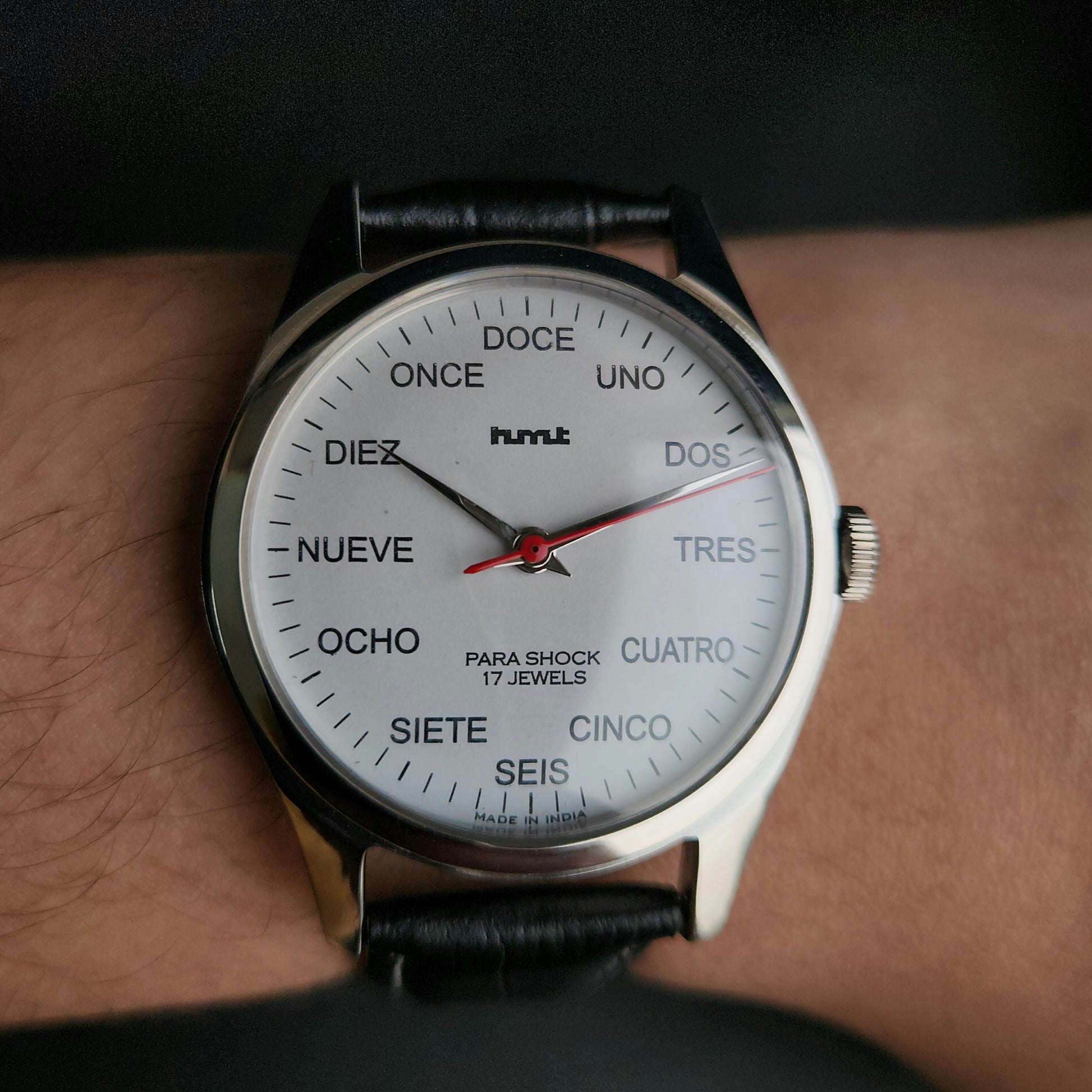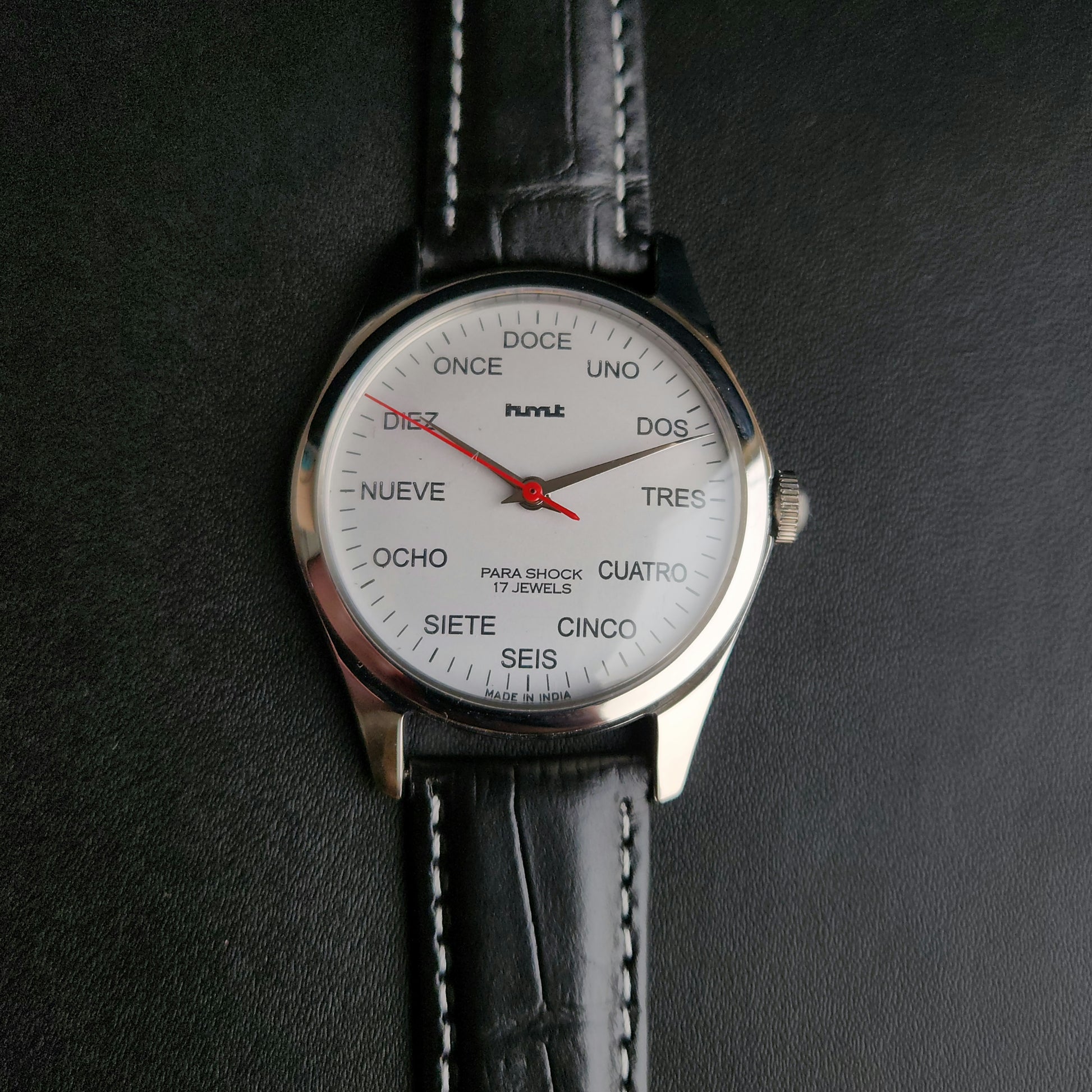Vintage MOD HMT Spanish Hand Winding 17 Jewels White Face Black leather Strap Men's Wrist Watch K21