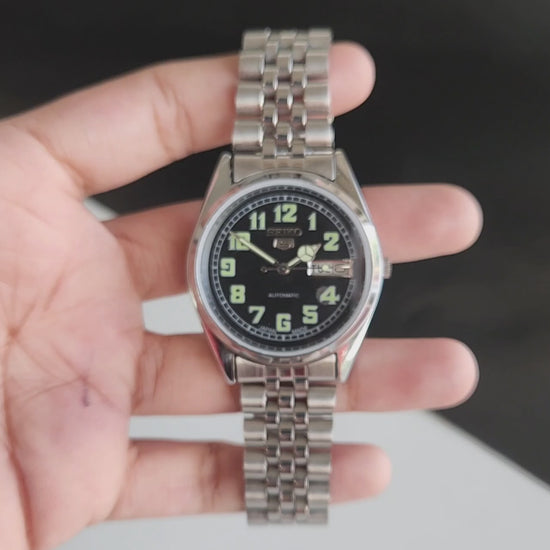 Vintage MOD Seiko 5 Automatic 17 Jewels Cal.6309 Black Face Jubilee Bracelet Men's Wrist Watch J61