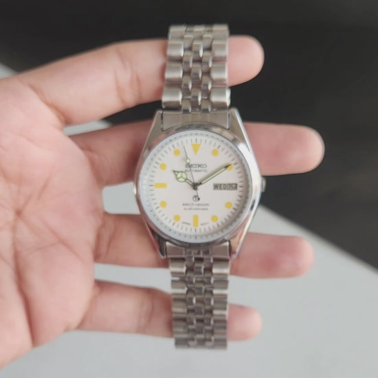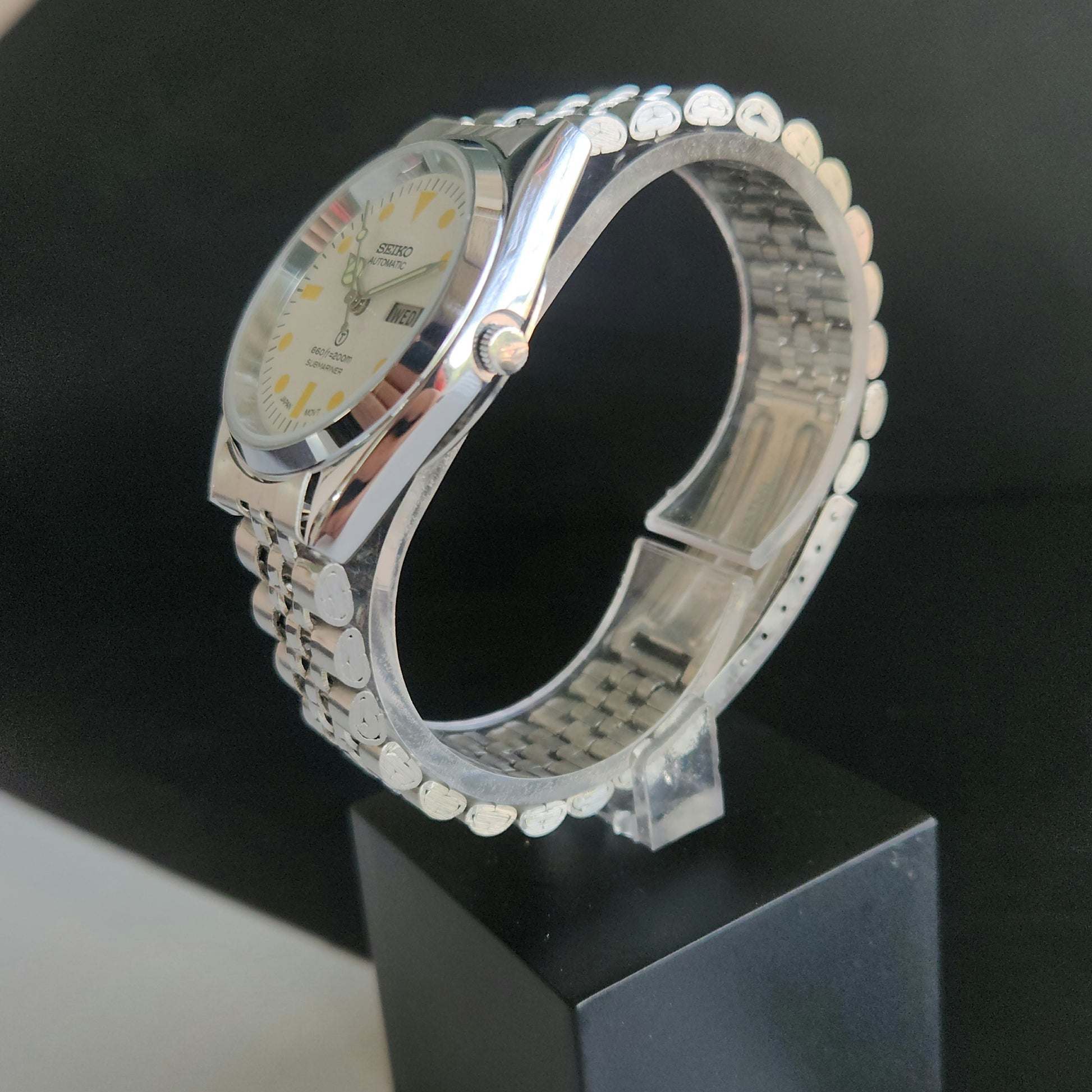 Vintage MOD Seiko 5 Automatic 17 Jewels Cal.6309 White Face Jubilee Bracelet Men's Wrist Watch J58