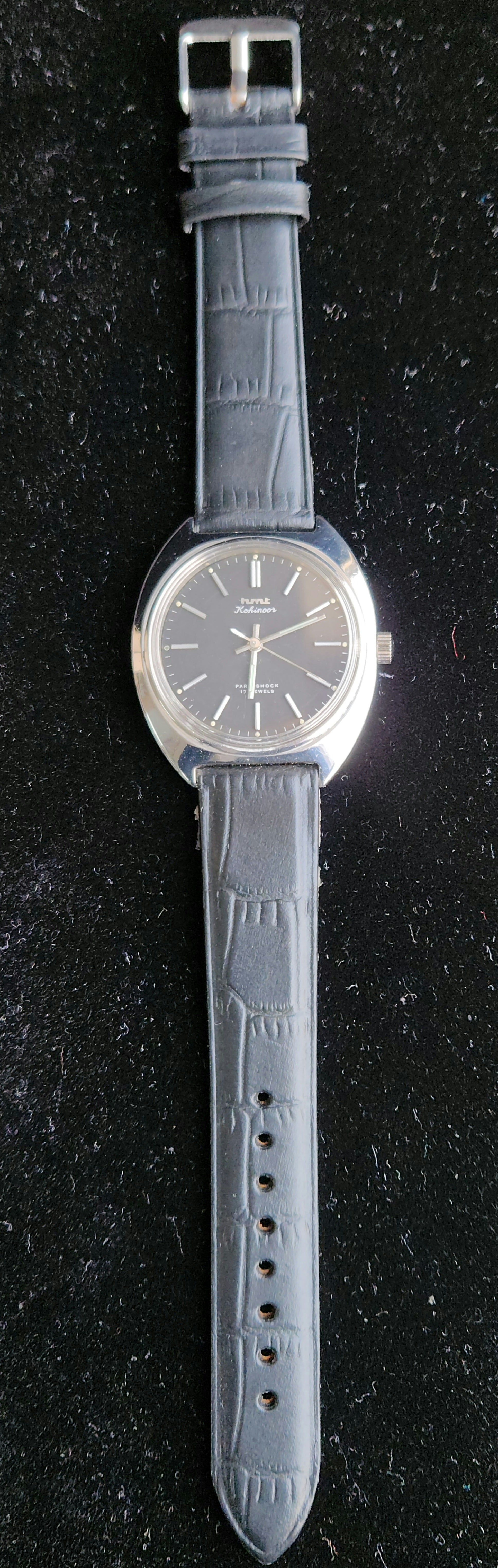Vintage Original HMT Kohinoor Hand Winding 17 Jewels Black Face Black Leather Strap Men's Wrist Watch J98