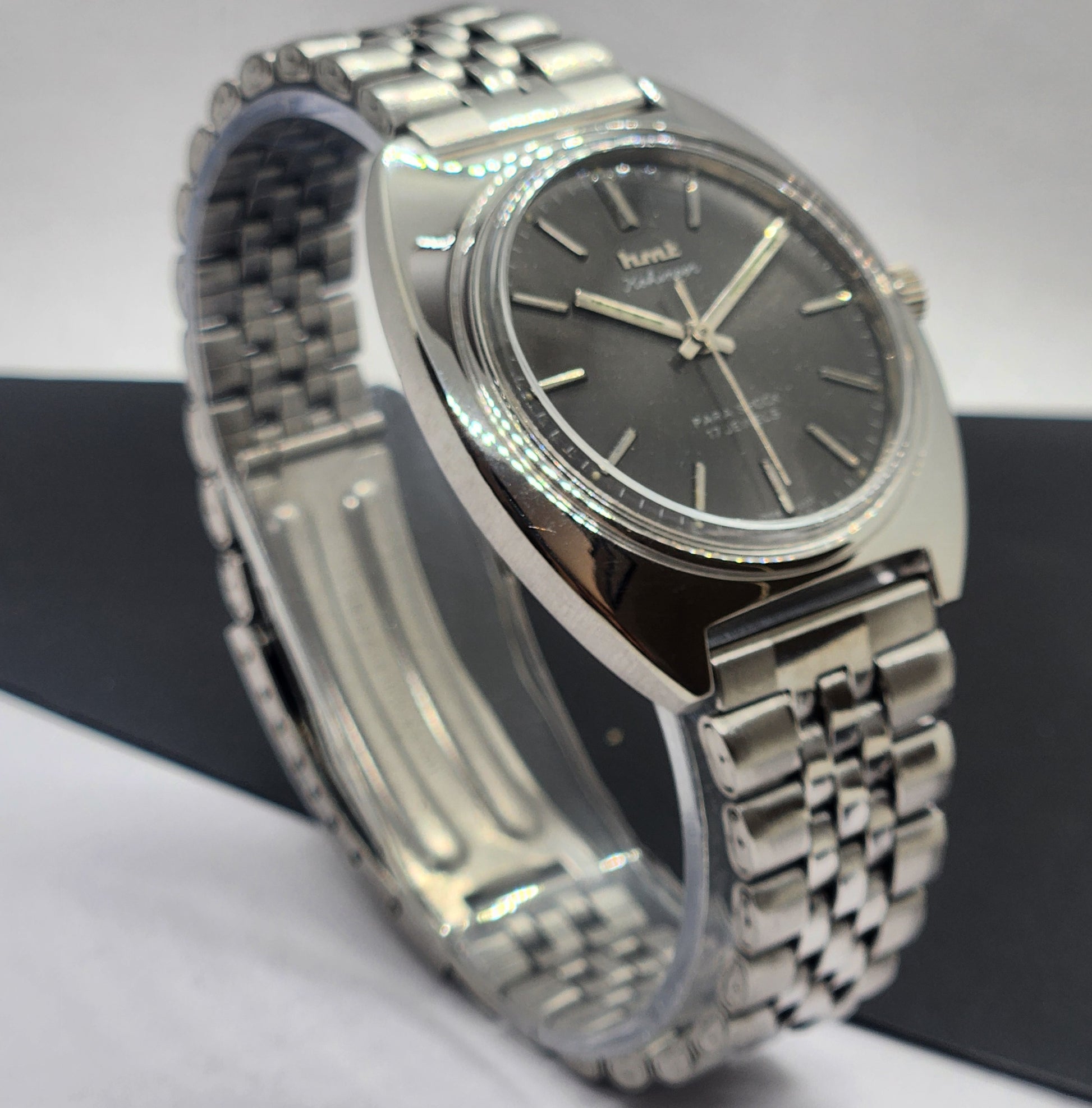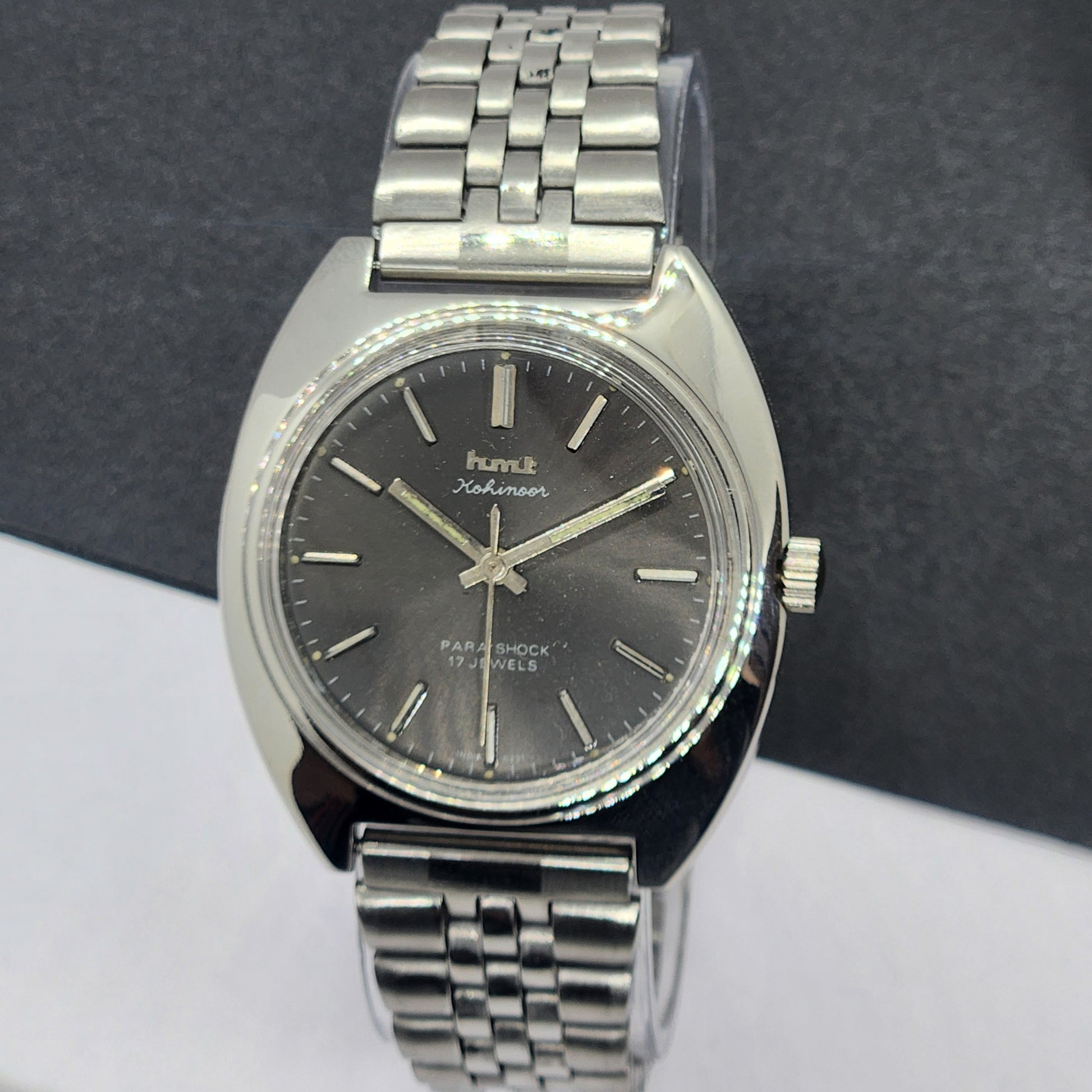Vintage Original HMT Kohinoor Hand Winding 17 Jewels Gray Face Silver Bracelet Men's Wrist Watch F24